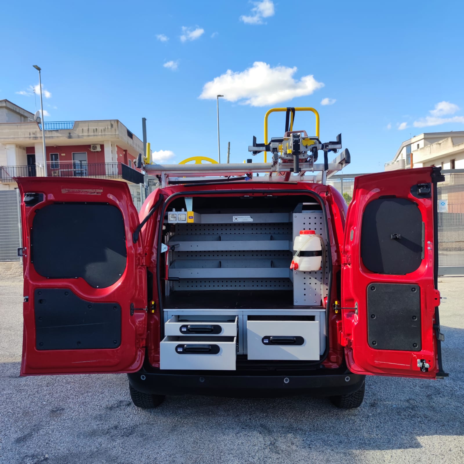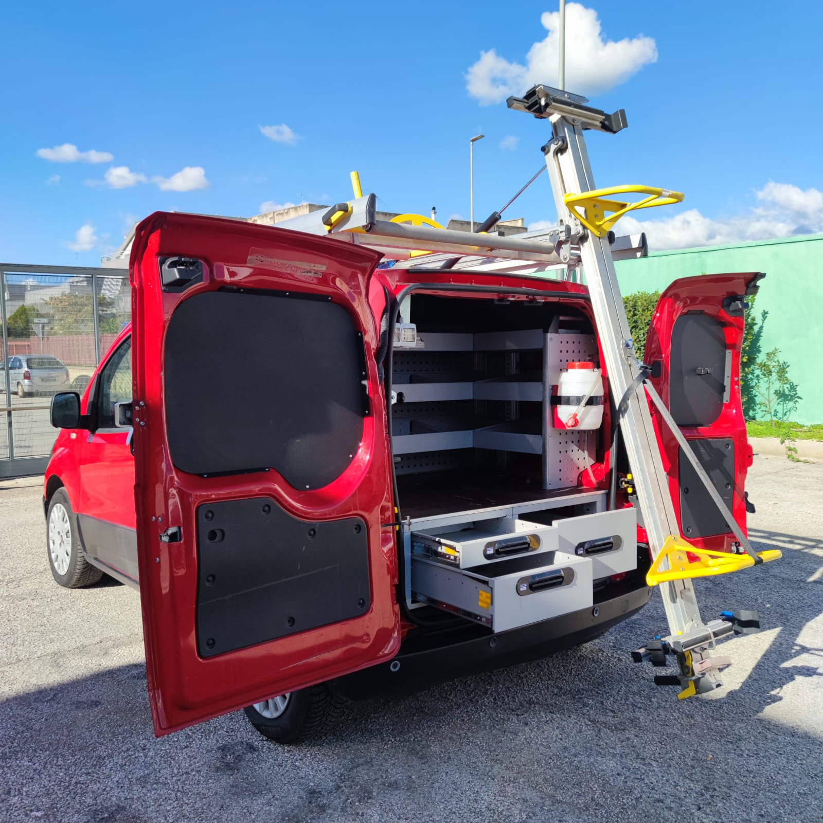 ABS-N.2 AIRBAG-CHIUSURA CENTRALIZZATA-CLIMA-ALZACRISTALLI ELETTRICI-BRACCIOLO-SPECCHIETTI LAT ELETTRICI-RADIO CD-BLUETOOTH-COMPUTER DI BORDO-USB-SENSORI DI PARK POST-PORTA LATERALE-PORTAPACCHI-SCAFFALATURA-COLORE ROSSO